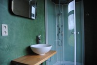 Située au 1' étage de notre établissement, cette chambre, décorée avec goût sur le thème des "Bocages", dispose d'un lit de 2 personnes et d'une petite salle de bain privative comprenant douche, WC et lavabo ainsi que d'une Télévision câblée et d'un accès gratuit à l'internet via wifi. Au rez-de-chaussée, un coin salon ainsi qu’un grand living pourvu d’une cheminée ancienne et d'une grande terrasse vous accueillent pour déguster un petit déjeuner du terroir.