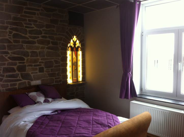 Cette chambre, décorée avec goût sur le thème de l'"Abbaye du Val-Dieu",
